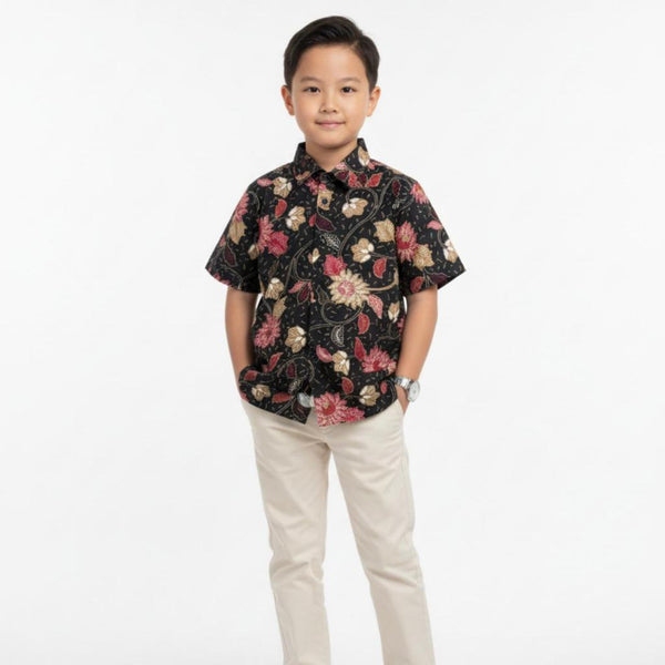 Two Mix - Kemeja Batik Couple Ayah dan Anak Laki Laki - Outfit Atasan Batik Floral Premium 4456