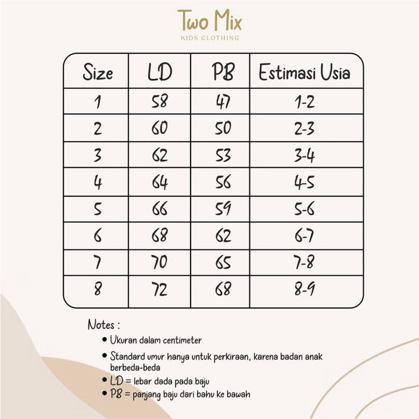 Size Baju Anak Perempuan : 1-8