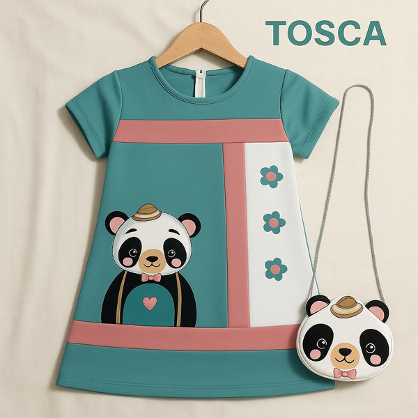 Two Mix - Dress Anak Perempuan Lucu Print Bear Bonus Tas Bear 1-8 Tahun 4296