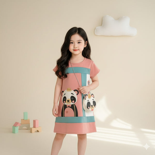 Dress Anak Perempuan Lucu Digital Print Beruang